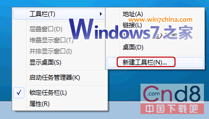 1、在任务栏上右键 -> 工具栏 -> 新建工具栏