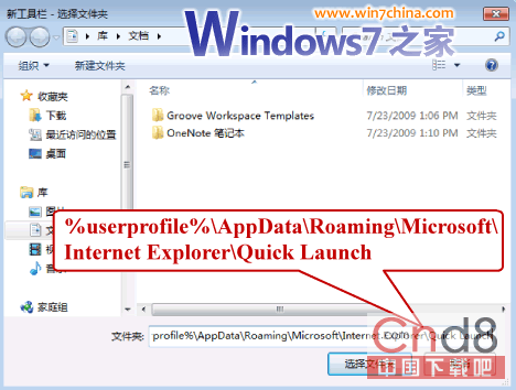 二、如何找回 Windows XP 样式的快速启动栏 1、在任务栏上右键 - 工具栏 - 新建工具栏 2、在文件夹里面输入这个路径,然后按回车: %userprofile%AppDataRoaming