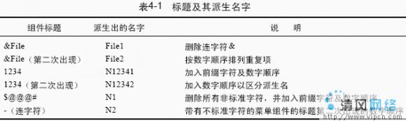 表4 - 1举出了这样的一些例子,假定表中所有的菜单项出现在相同的菜单栏中。