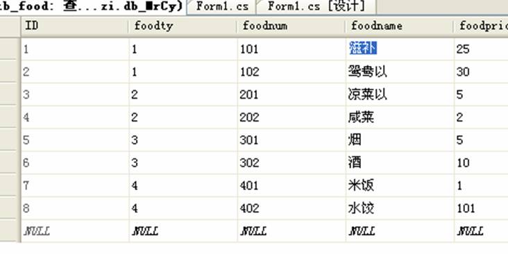 string commandstring = "select foodname,id ,foodprice from tb_food ";