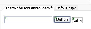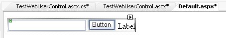 编辑TestWebUserControl.ascx,切换到[设计]视图,从工具箱拖动一个 TextBox、一个 Button 和一个 Label 控件到页面上,如图所示: