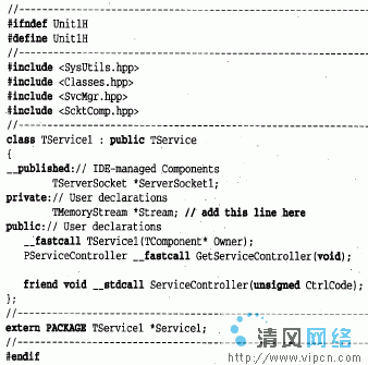 2)第2步,把一个TMemoryStream类型的私有数据成员添加到TService1类中,程序单元的头文件如下: