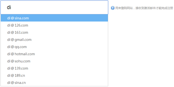 register.js邮箱代码片段: //邮箱下拉js单独引用emailup.js$("#uemail").focus(function(){ var noticeMsg = '用来登陆网站,接收到激活邮件才能完成注册'; notice($("#uemailc