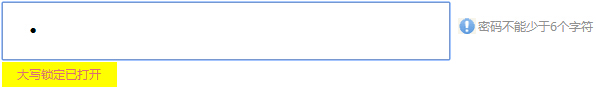 大写锁定的思路是:判断输入的字符的最新一位是否是大写字母,如果是大写字母,则提示大写锁定键打开。这种方法并不十分准确,网上有一些插件能判断大写锁定,在这里只是简单地做了一下判断。