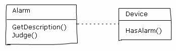 我们利用一个工厂解决了信号数据采集的问题,并且为下一步可能发生的变化留下了扩展的可能。下面看看告警应该怎样处理。我们先简单的考虑一下告警的形成:首先是在设备上采集到最新的实时数据,然后按照某个规则去判断这些数据是不是符合了告警的条件。在符合条件的情况下,在设备上面产生告警。在大部分情况下,一个告警只和一个设备有关,但是也有这样的情况:某个告警条件需要同时判断多个设备上的多个信号。于是我们设计出下面这样的结构: