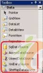 现在,既然我们看到了怎么创建并且通过Visual Studio的接口来使用数据库;下面,让我们把注意力转到从一个ASP.NET 2.0 web页面访问和显示来自一数据库的数据上。ASP.NET 2.0包括了几个新的数据源控件-它们的唯一目的是提供到数据的声明性存取。共有五个内置的数据源控件-它们都能够在Visual Studio中的工具箱的"数据"部分找到(请见下边的屏幕快照)。