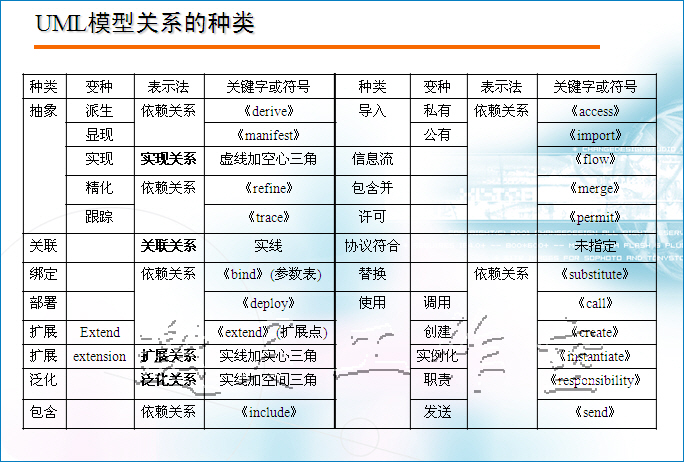泛化关系描述了一般事物与该事物中的特殊种类之间的关系,也就是父类与子类之间的关系。
