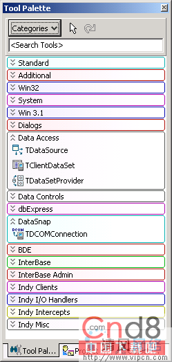 DataAccess页:XML相关控件,DataSnap页的SockeConnection以及WebConnection等几个控件都不翼而飞。另外Borland对Indy系列到是很好,它们都呆在那里呢^_^,可惜本人很少用它们。(另外本人也没尝试是否可以用手工方式添加消失的控件,也许Borland根本就没提供那些控件的.net实现)