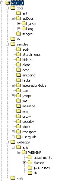 首先将下载的Axis软件包axis-1_1.zip解压缩,可以看到如下图所示的目录结构: