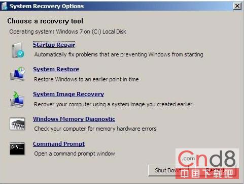在系统恢复选项界面的倒数第二个是Windows内存诊断项。我的经验是当用户发现系统突然蓝屏死机,同时系统最近也没有做过任何改变的情况下,那么问题绝大部分是内存错误造成的。拥有一个检测工具,可以使你在Windows操作系统外来运行从而使检测内存错误更加容易。