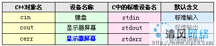 图中的意思表明cin对象的默认输入设备是键盘,cout对象的默认输出设备是显示器屏幕。