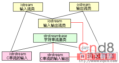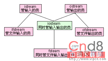 我们所熟悉的输入输出操作分别是由istream(输入流)和ostream(输出流)这两个类提供的,为了答应双向的输入/输出,由istream和ostream派生出了iostream类。 类的继续关系见下图: