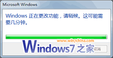 取消或启用Windows 7默认功能,这一过程也可能会很长,这取决于你取消/启用的功能项的多少,以及系统配置的高低。如下图所示: