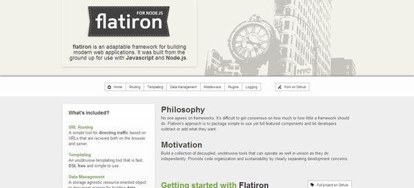 Flatiron 是个适应性很强的 Node.js 框架,用来构建现代化 web 应用。