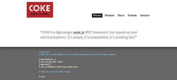 COKE 是轻量级的 Node.js 的 MVC 框架,能加快 web 应用开发,它非常简单,开发速度非常快。