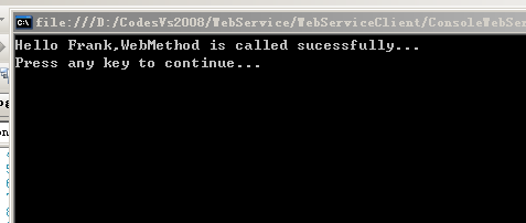 37 return "Hello Frank,WebMethod is called sucessfully";
