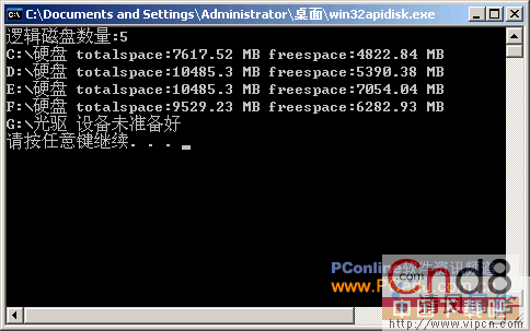 cout<<" freespace:"<<(float)i64FreeBytesToCaller/1024/1024<<" MB";//磁盘剩余空间
