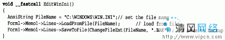 下面的例子将WIN.INI文件载入备注字段并制作一个名为WIN.BAK的备份文件。