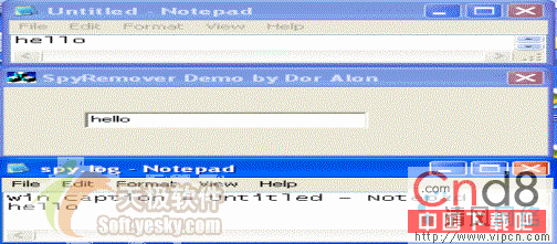 将钩子DLL从应用程序进程中移去将使注入该应用程序的窥探程序失去窥探键击的功能。示例程序使用类SpyRemover来移去钩子DLL文件。SpyRemover构造器接收一个"授权模块"的列表。假如一个模块只是装入到一个应用程序中但是没有出现在该列表中被认为是没有授权的。SpyRemover通过枚举所有的应用程序进程模块来探测未经授权的模块。