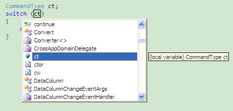 1. GenerateSwitchCases(EnumerationLiteral),根据提供的枚举类型生成一个switch语句和一系列case语句,事实上,C#中已有这样的一个例子: