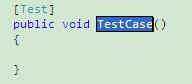 输入TestCase的名称,回车,这样就可以输入测试代码了。观察一下这个Snippet,它的变化之处只有一个,就是TestCase处。
