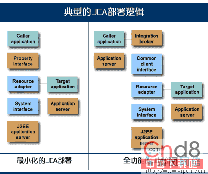 CCI与企业版JavaBeans(EJB)的调用界面是不同的,而且JCA 资源适配器的封装方式也不尽相同;JCA的Java编译文件(JAR)与EJB JAR文件有不同的设计方式.所以CCI代表了J2EE范围内一个新的专门的编程模型;它是复杂的而且需要专门的技术知识.但是实际使用CCI的开发者的大部分很可能将是工具软件销售商(例如WebGain和IBM Visual Age)以及集成中间件生产商(例如WebMethods和TIBCO Software),而不是企业应用开发者.