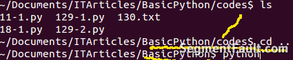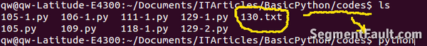 比如:在上一级目录中(~/Documents/ITArticles/BasicPython),加入我进入到那个目录中,运行交互模式,然后试图打开130.txt文件。