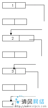 上面是存在内存中的数据,在存储位置上,它们都是不连续的,但我们可以不考虑他们的实际位置,而在逻辑上让他们形成一种前后相联的关系。怎么做呢?